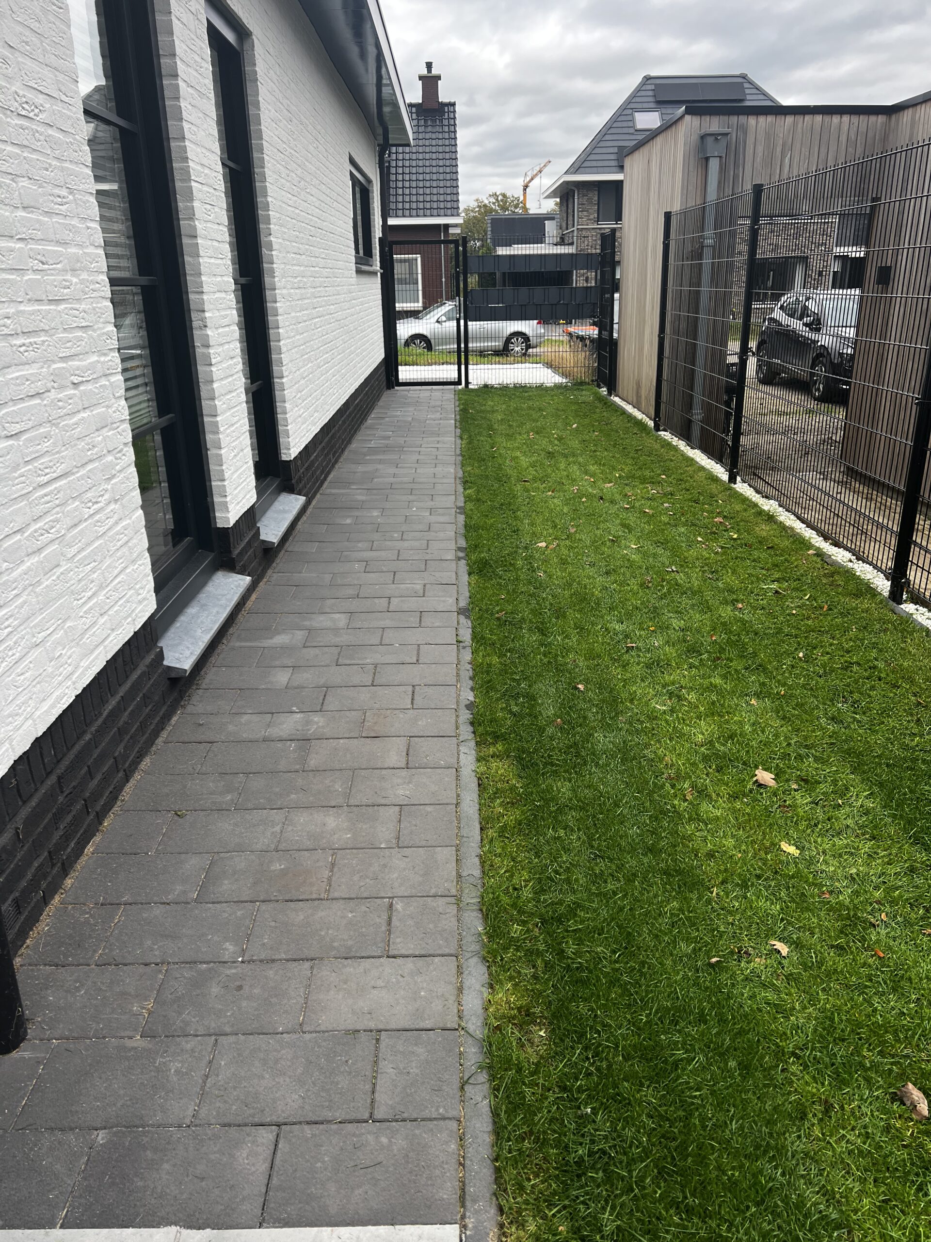 Bij deze woning in Hengelo realiseerde hoveniersbedrijf Borink een fris nieuw gazon, vol strakke lijnen en directe speelruimte. Dankzij de gekozen graszoden is het resultaat direct verzorgd en onderhoudsvriendelijk. Een frisse groene basis voor jarenlang buitenplezier.